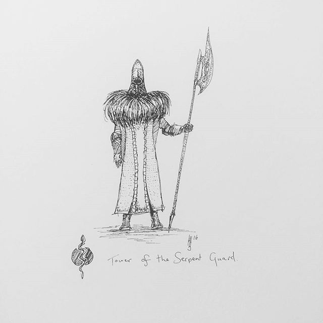 A guard from the tower of the serpent heralds my rather modest return to sketch a day. #cloudtoparchipelago #fantasyart #penandinkdrawing #penandink #rotring #steampunk #illustration #bookillustration by admin on June 15, 2016June 15, 2016