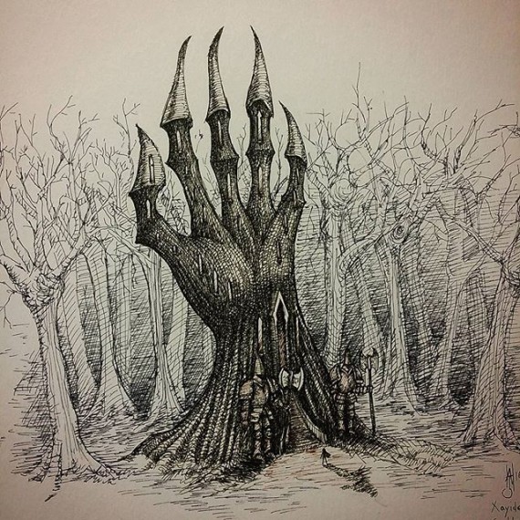 Xayide's castle "Horok" from Never Ending Story. Today's sketch! #neverendingstory #horok #childrensbooks #sketchaday #sketchbook #sketch #rotring #penandink #fantasyart #michaelende #atreyu #bastianbalthazarbux #illustration #bookillustration #rohrerandklingner #fineliner by admin on February 25, 2016February 25, 2016